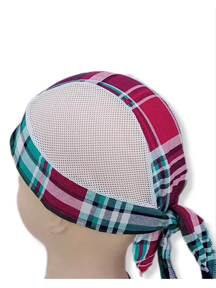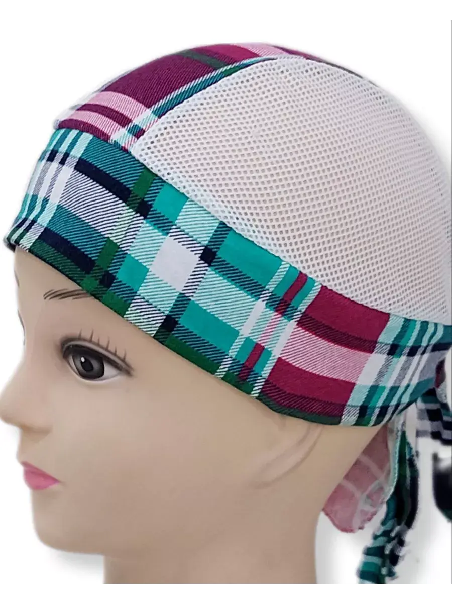 Состоит из легкого материала-Хлопок 95% и Эластан -5% который обеспечивает удобство носки каждый день. Легкая сетка на бандане проветривает голову и не дает ей вспотеть, завязка на задней части банданы позволяет надежно фиксировать ее на голове, не соскальзывая. Она также защищает голову, лицо и шею от вредных солнечных лучей.