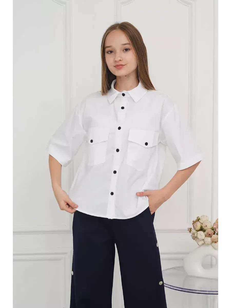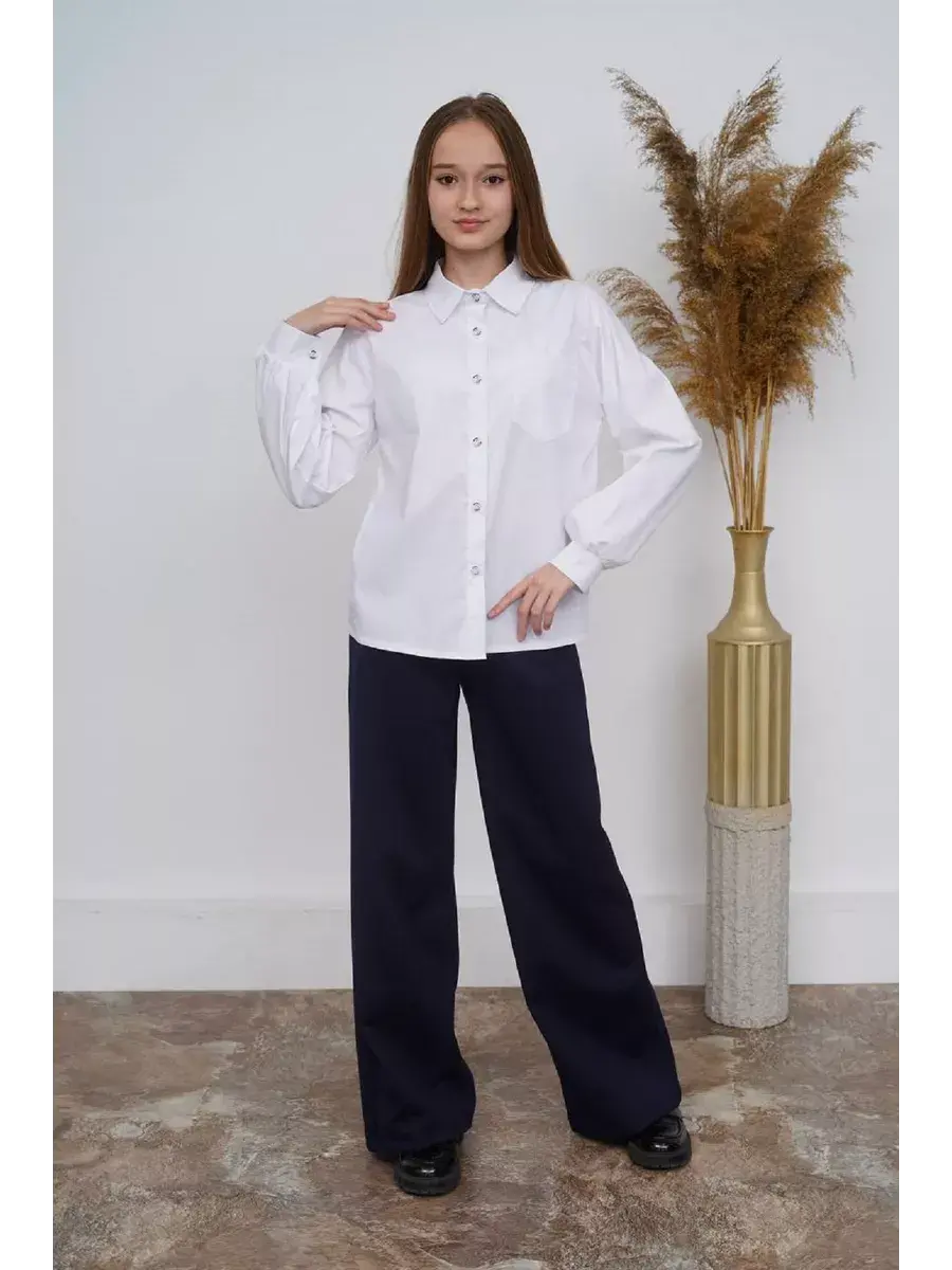 Пуговицы позволяют легко надевать и снимать блузку, она прекрасно сочетается с брюками, юбками и жилетами , что позволяет создать стильный и неповторимый образ для школы.