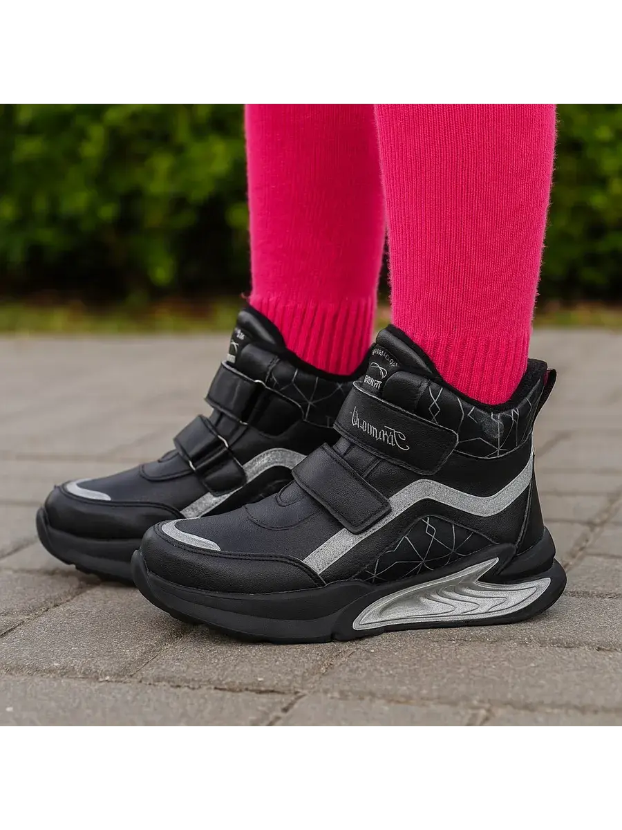 Ботинки из искусственной кожи с принтом. Подкладка и стелька выполнена из мягкого ворсина.