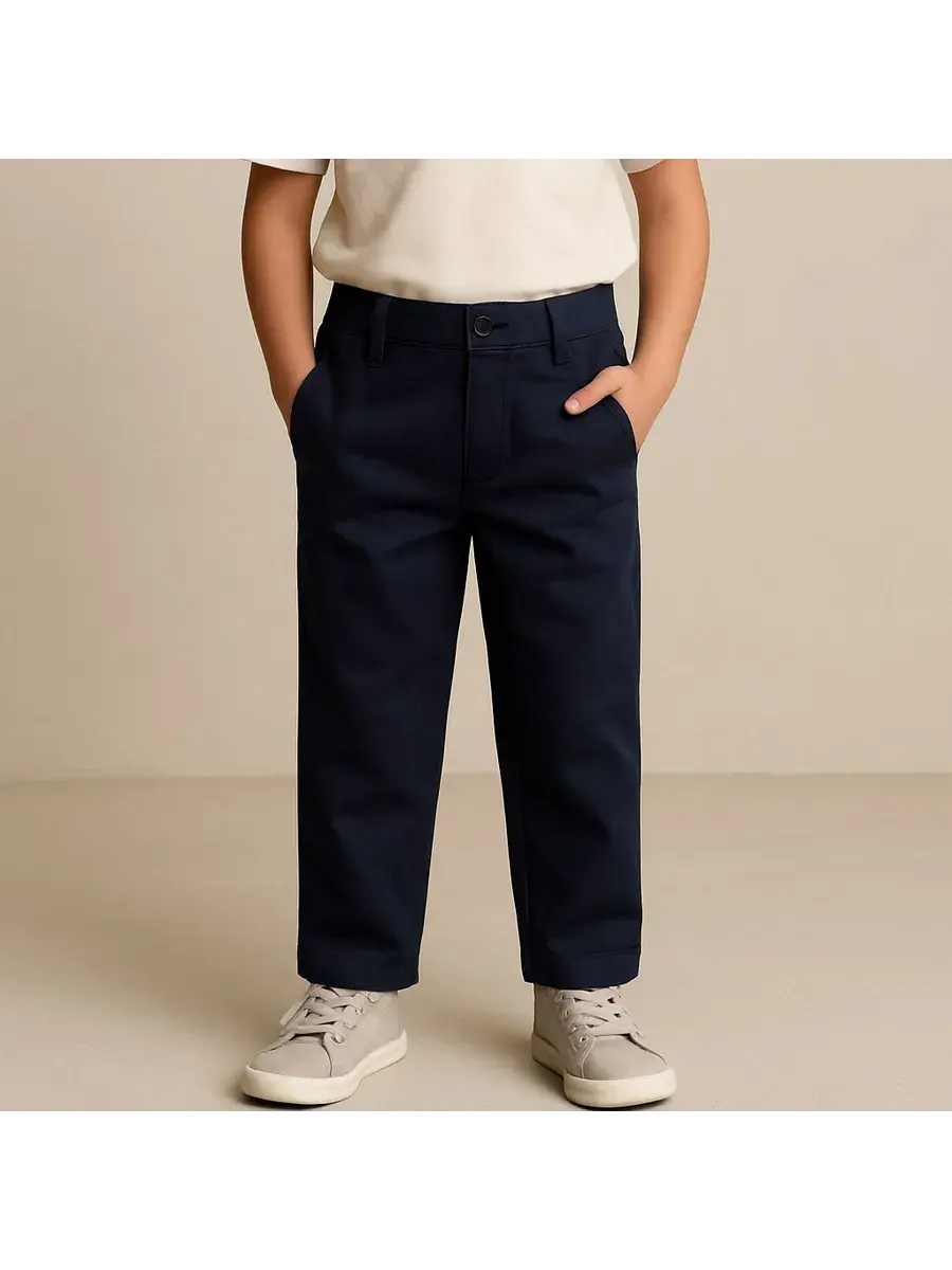 Штаны детские с застежкой на пуговицу и молнию позволяют легко регулировать посадку и обеспечивают дополнительный комфорт в течение всего дня.