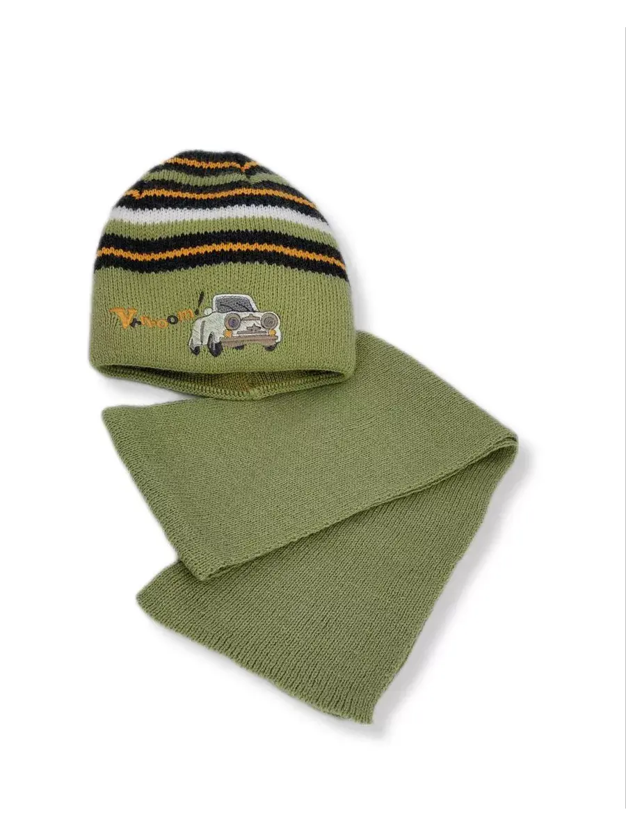 Детский вязаный комплект для мальчика шапка с шарфом на весну и осень. Данная демисезонная модель подойдет для мальчика дошкольного возраста.