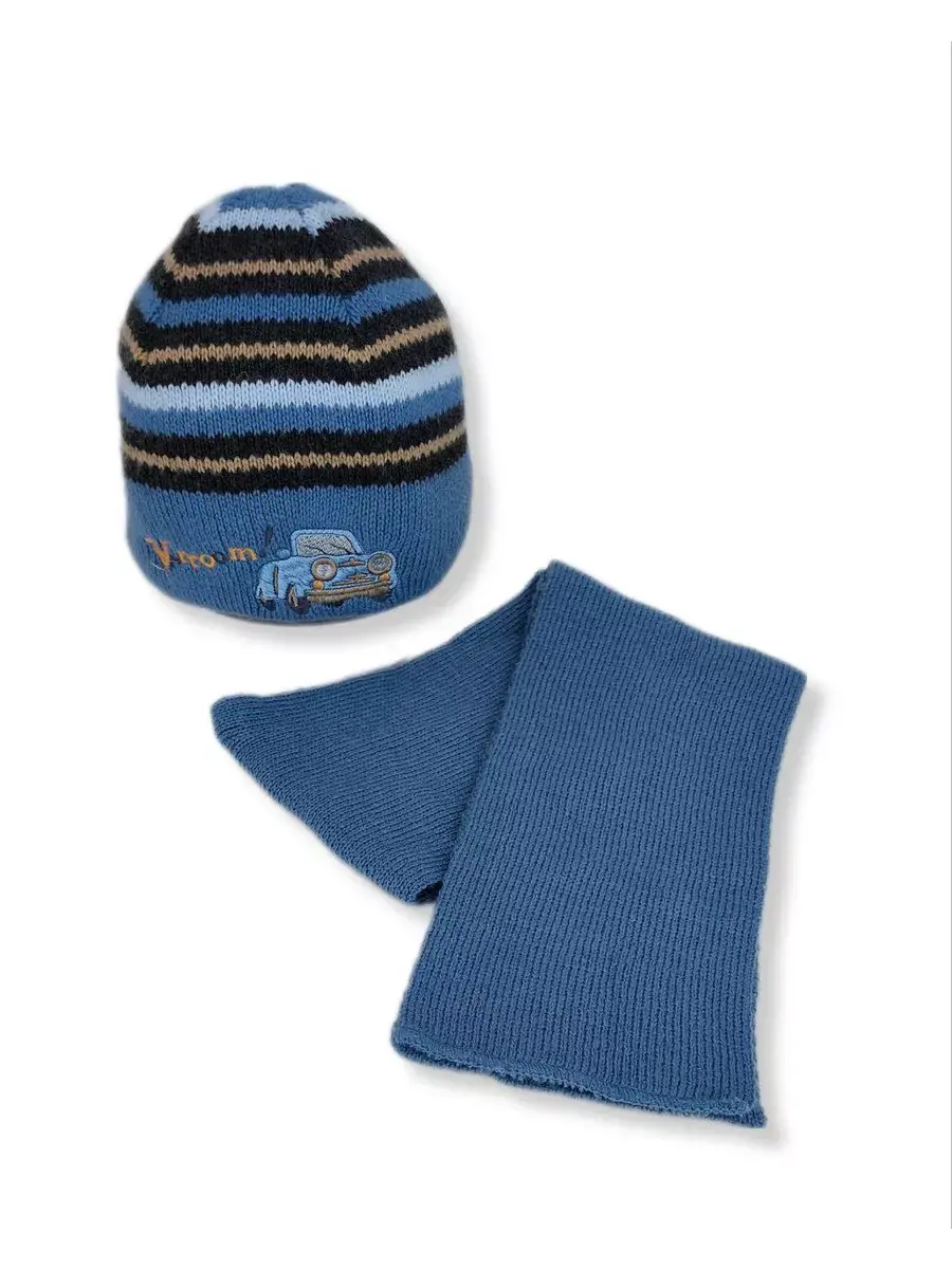Детский вязаный комплект для мальчика шапка с шарфом на весну и осень. Данная демисезонная модель подойдет для мальчика дошкольного возраста.