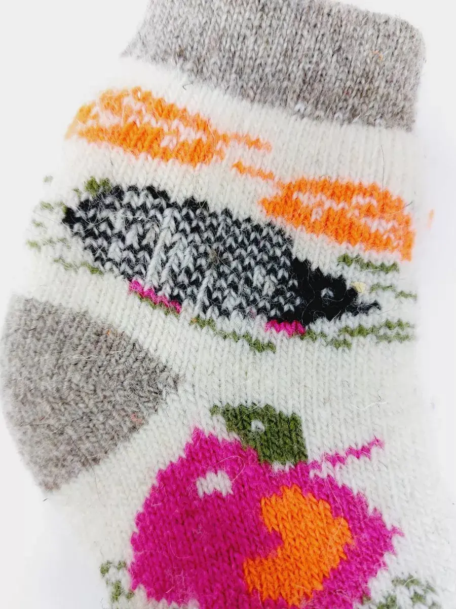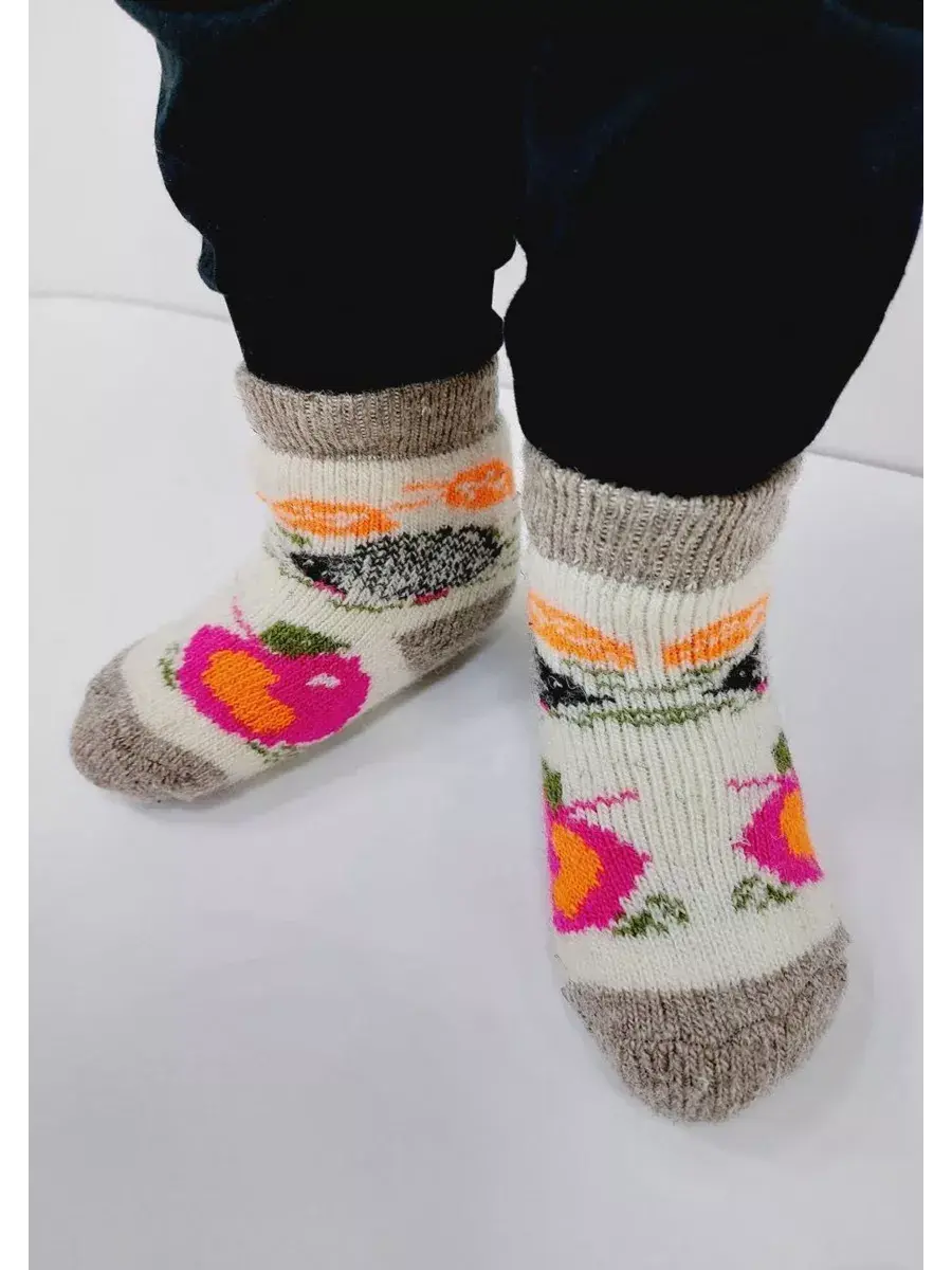 Теплые детские носки из натуральной шерсти. В данных носках вашему ребенку будет тепло даже в самую холодную погоду благодаря своей плотной вязке. В мороз лучше всего сочетаются с валенками.