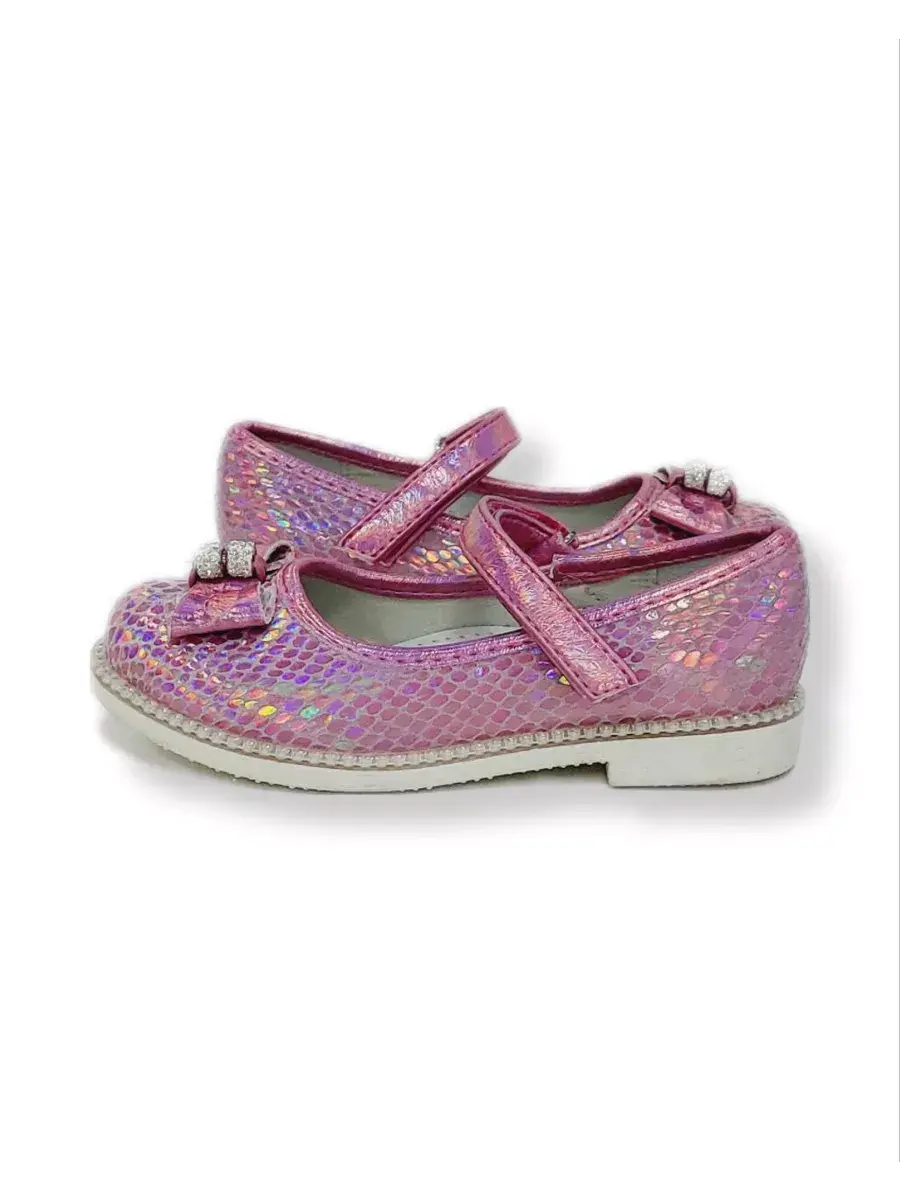 Туфли для девочки с подкладкой из натуральной кожи и стелькой с супинатором. Подошва из термопластичной резины (тпр) и высота каблука до 2см. Подойдет для утренника или любого другого мероприятия. Длина стелек в размерах.