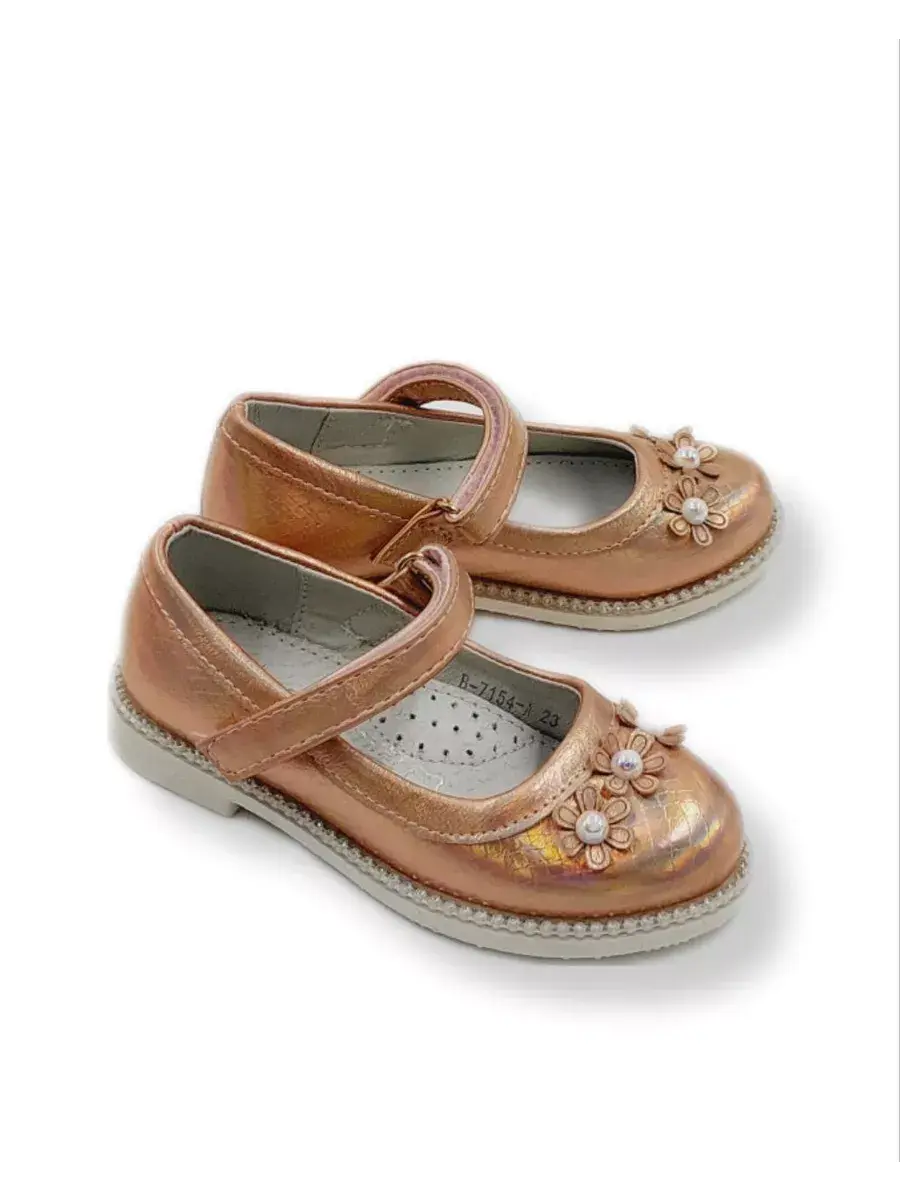 Туфли для девочки с подкладкой из натуральной кожи и стелькой с супинатором. Подошва из термопластичной резины (тпр) и высота каблука до 2см. Подойдет для утренника или любого другого мероприятия.