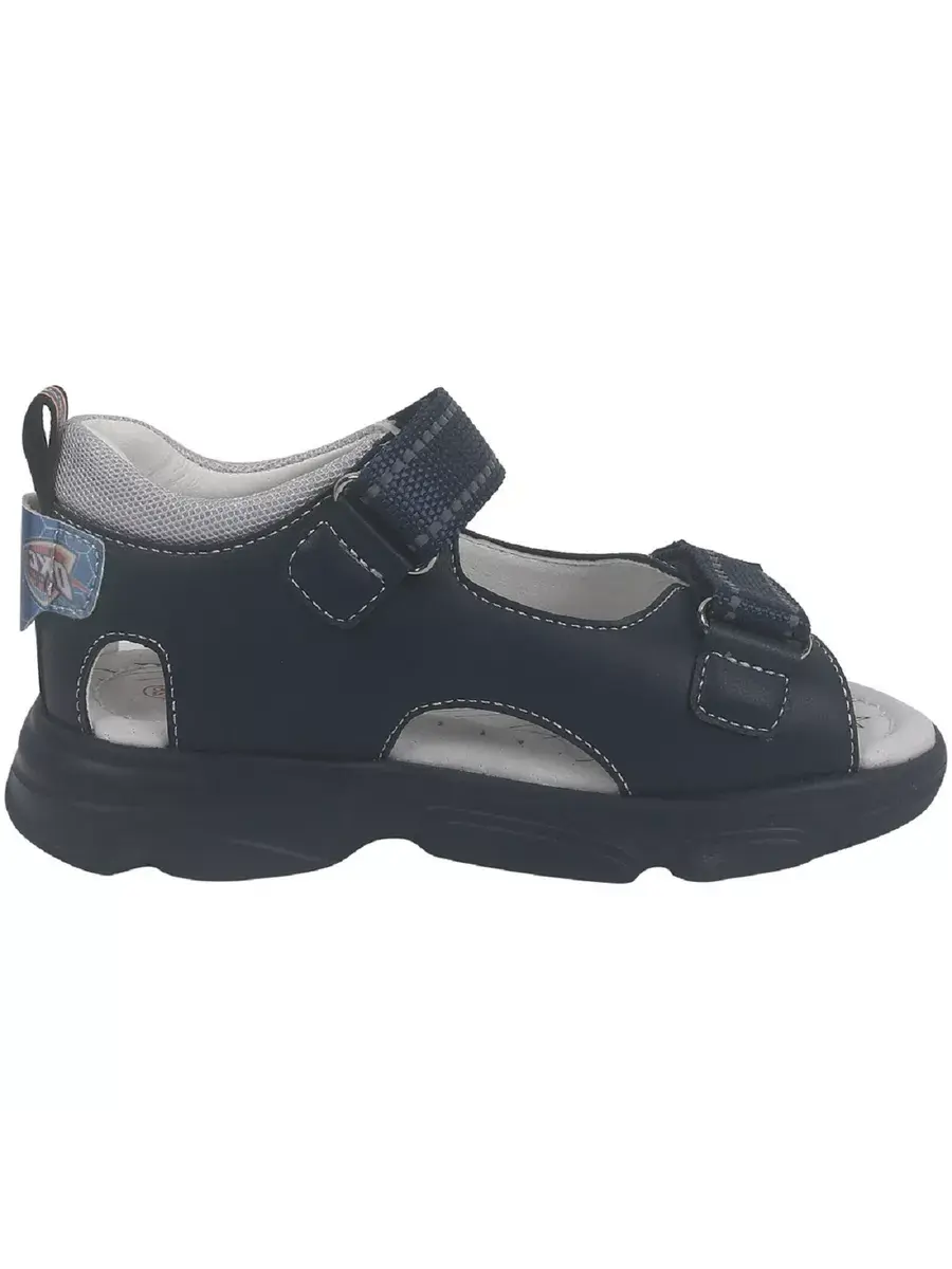Сандалии для мальчика со стелькой из натуральной кожи, подошвой из ЭВА, которая придаст комфорт при ходьбе благодаря своей эластичности и мягкости и верхом из искусственной кожи. Регулируемая полнота за счет застежек-липучек.