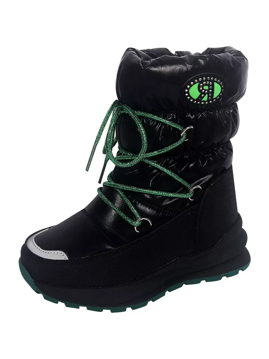 Верх с технологией WaterProof (водоотталкивающие), подошва из термопластичной резины (морозоустойчивая), теплая шерстяная подкладка и стелька, с застежкой-молнией и шнуровкой для удобства регулирования полноты ноги.