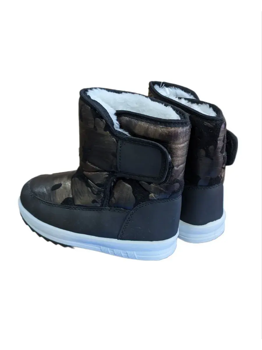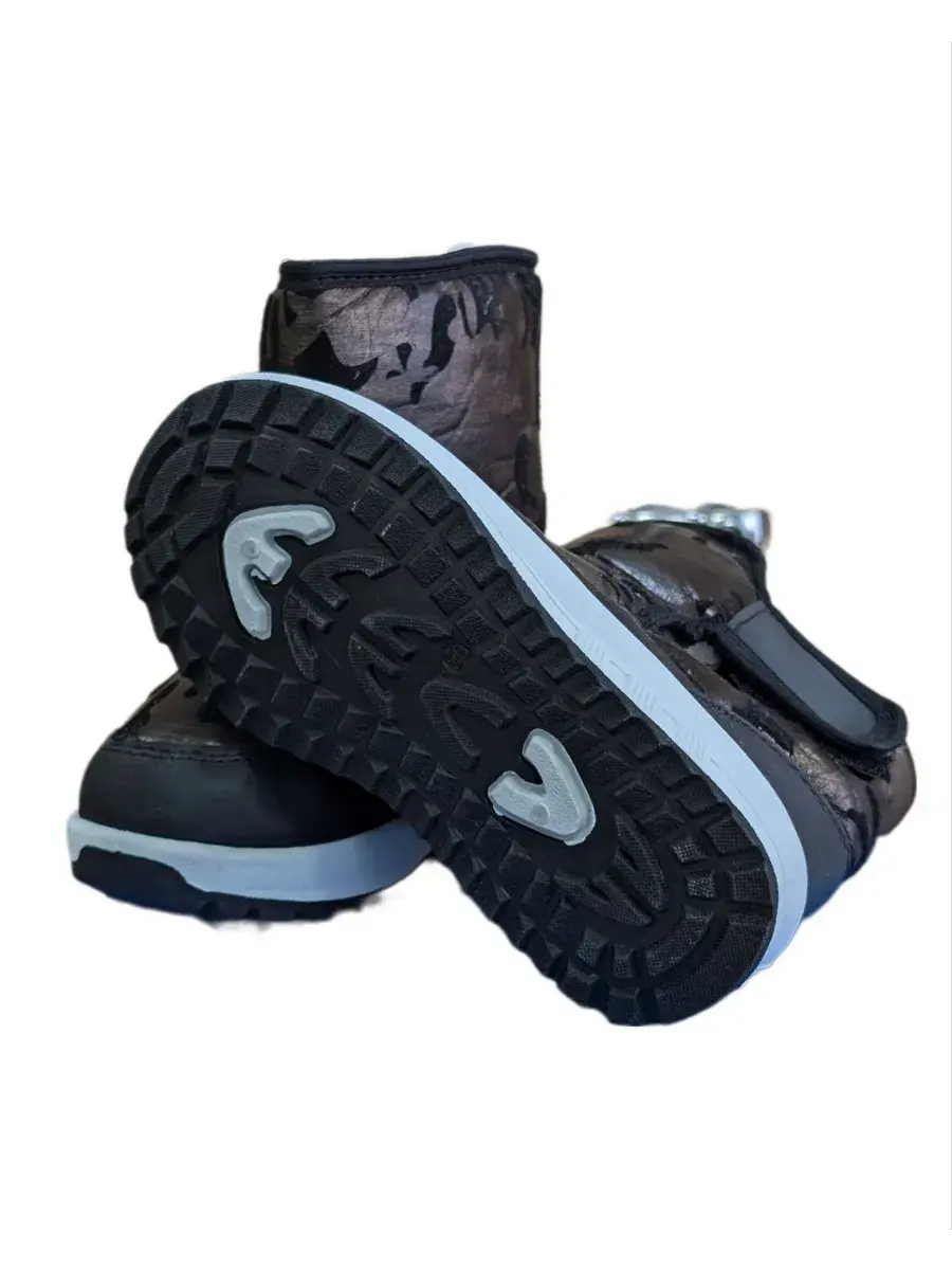 Дутики для мальчика с верхом текстиль, подошва из термопластичной резины (морозоустойчивая), теплая шерстяная подкладка и стелька, с застежкой-липучкой.