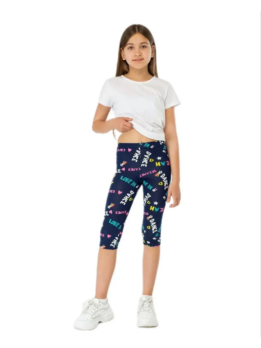 Леггинсы детские бриджи для девочки с высокой посадкой, на эластичном поясе.