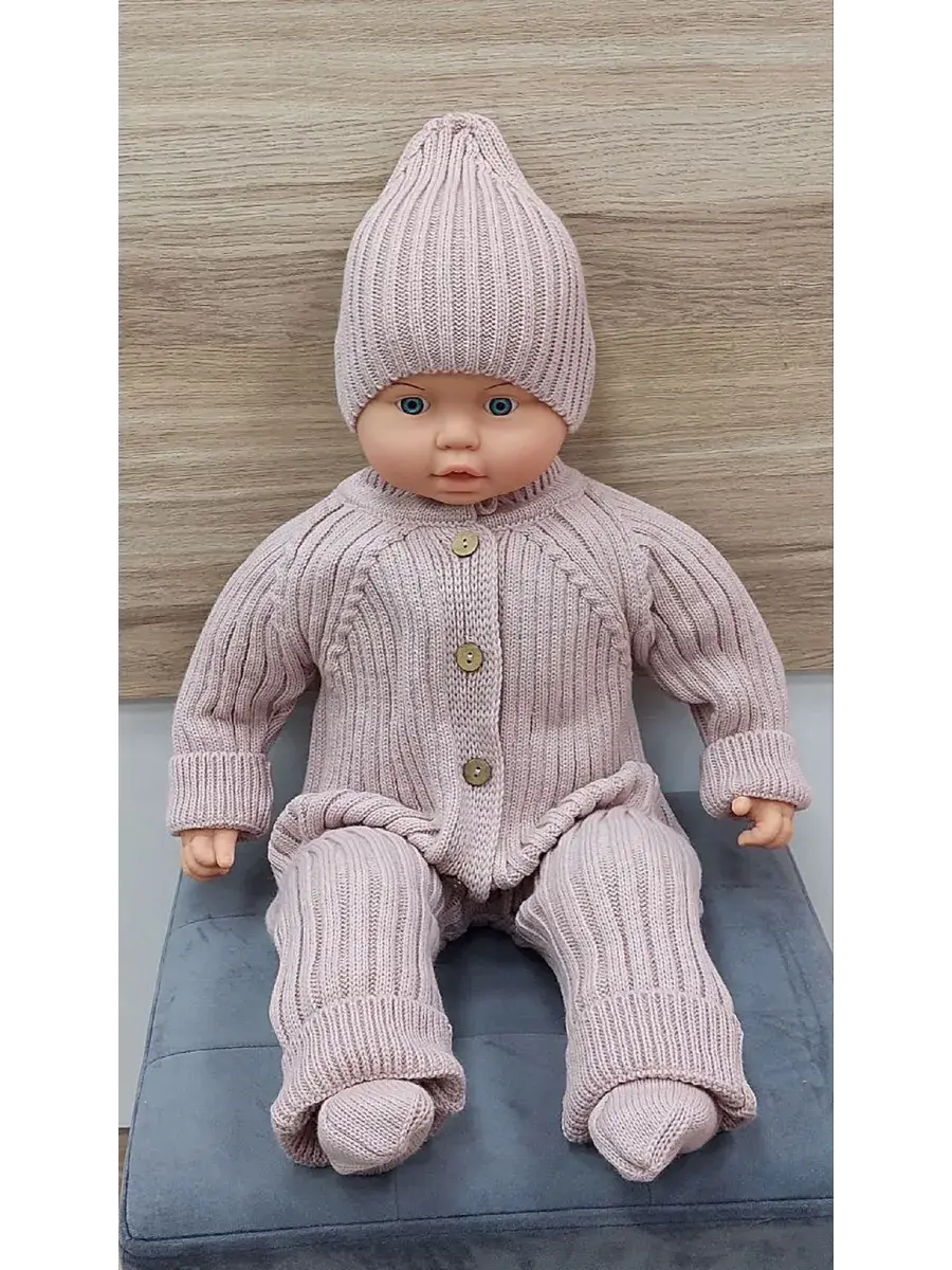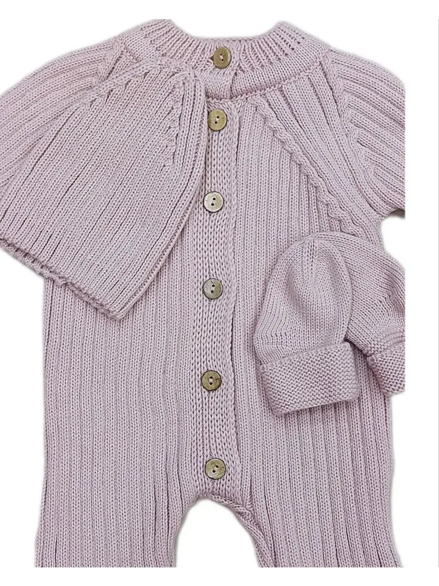 Детский вязаный комбинезон для мальчика и девочки от 3 до 6 месяцев ,носочки и шапочка в комплекте.
