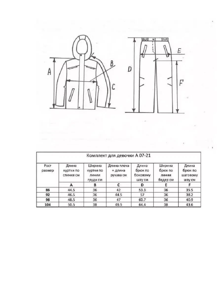 Куртка с трикотажными манжетами,рукава регулируются липучками. Брюки с напульсниками и регулируемыми бретелямиями, штаны на резинке БЕЗ застежки-молнии (на полную девочку не подойдет). .