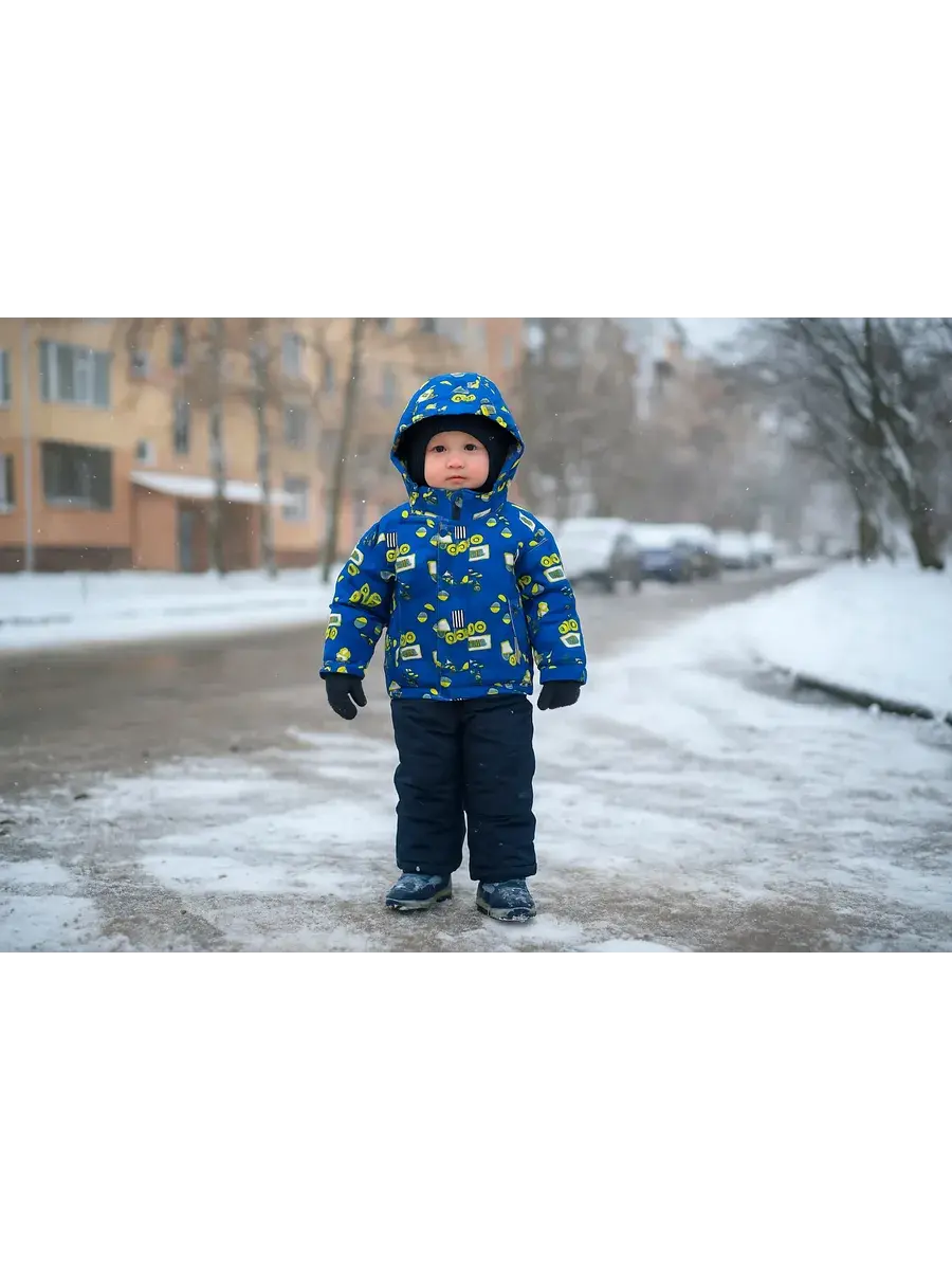 Полукомбинезон с напульсниками и регулируемыми бретелями. Нижняя часть брюк регулируется липучкой.