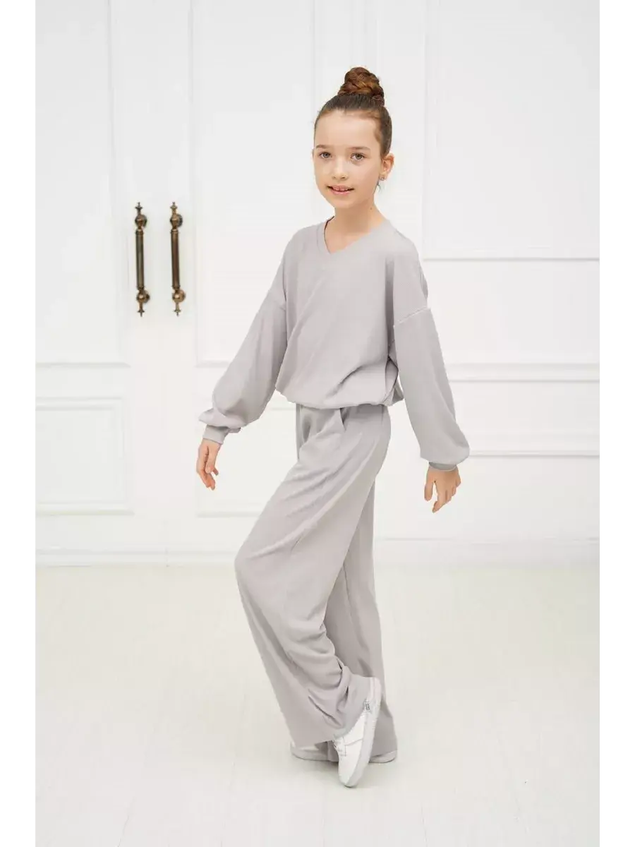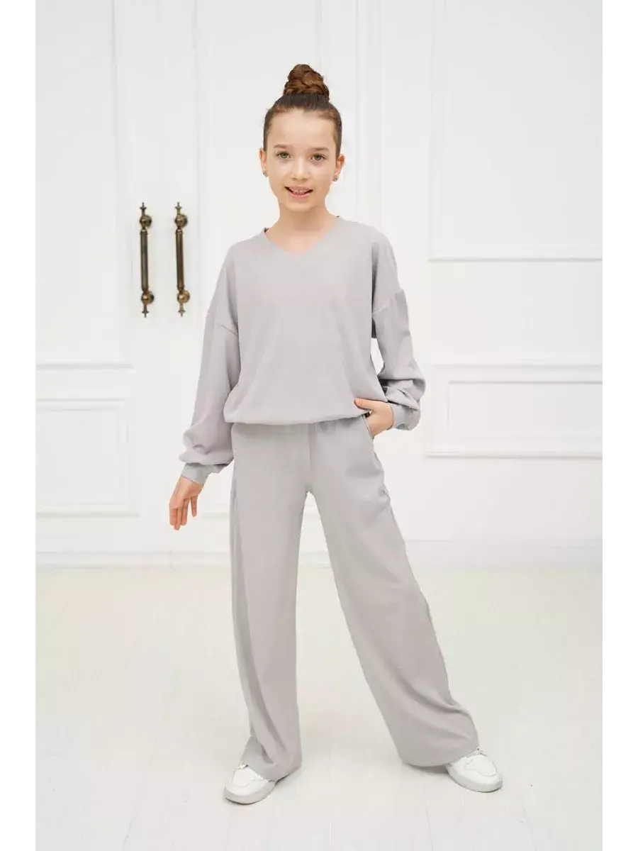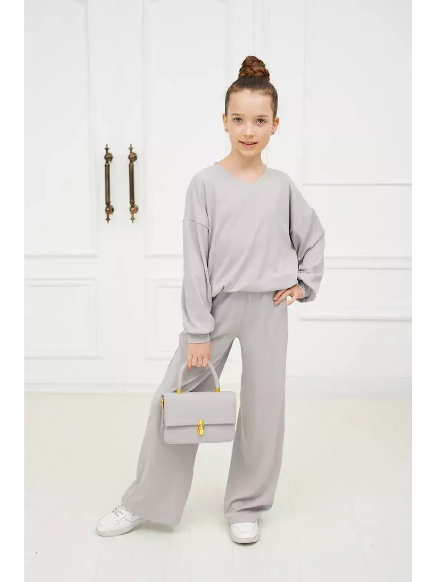 Экологичная мягкая ткань приятно ощущается на коже и хорошо пропускает воздух. Костюм двойка брючный для девочки свободного силуэта oversize отлично смотрится на девочке любого размера и роста. Свободный крой подарит обладательнице полную свободу движений и комфорт! Брюки клеш - универсальная вещь, которая делает образ стильным.