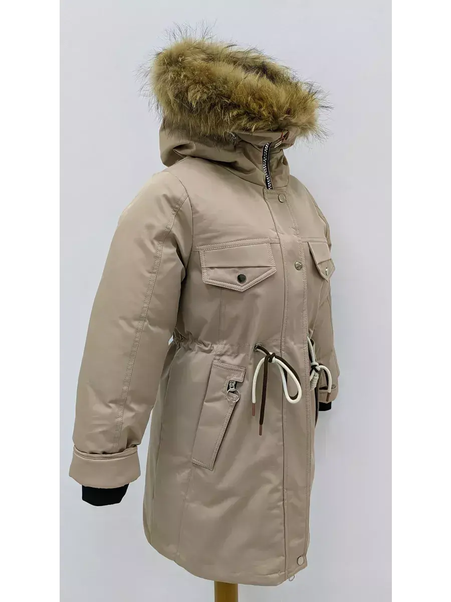 Куртка зимняя с мехом имеет карманы с застежкой .