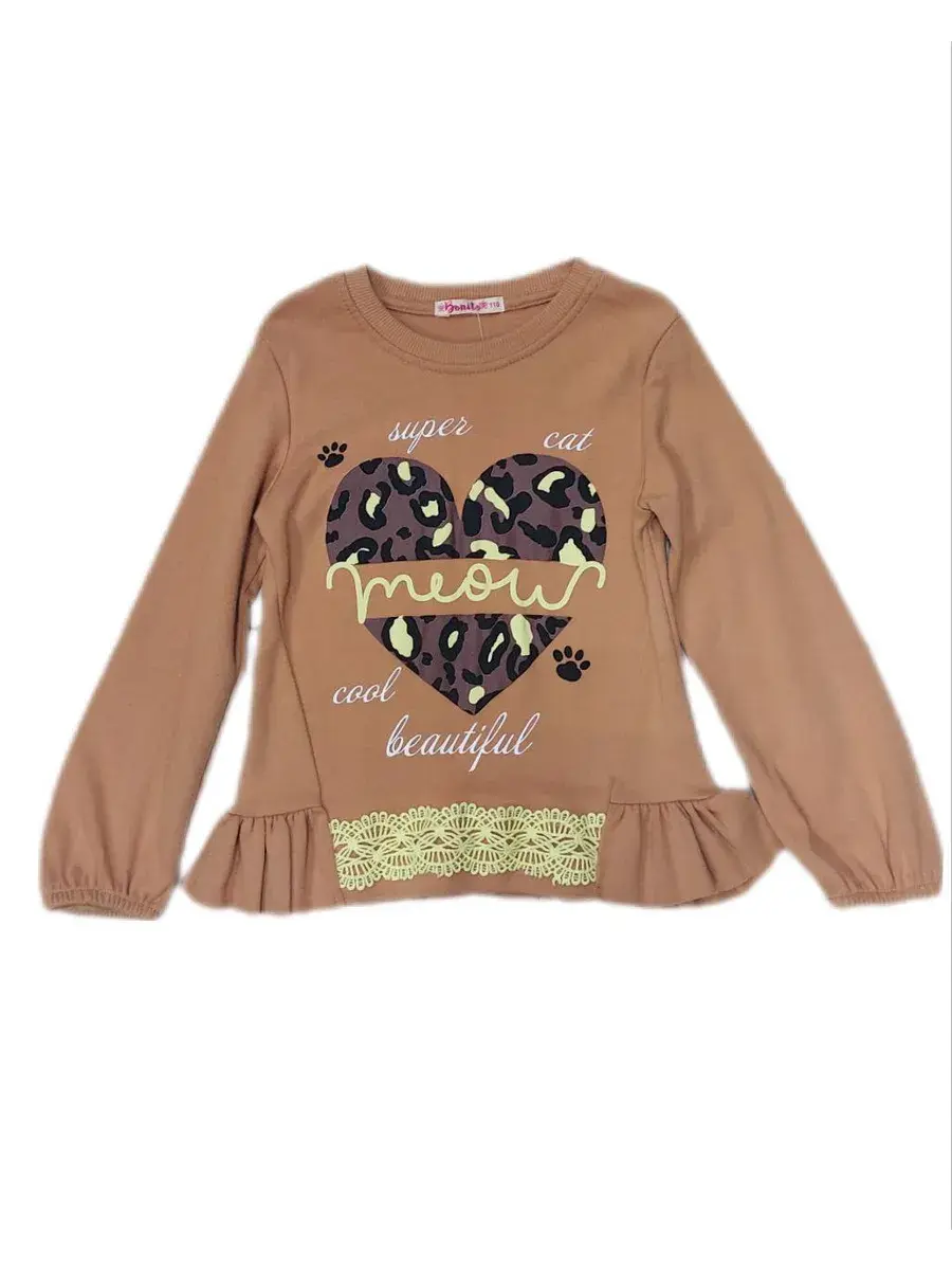 Кофта-лонгслив с сердечком для девочки - это стильный и удобный элемент гардероба, изготовленный из 100% хлопка