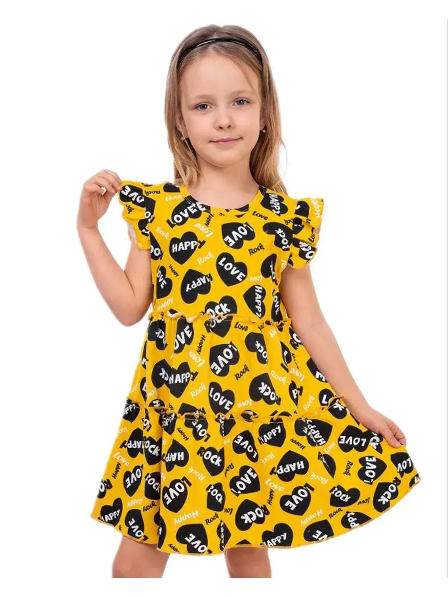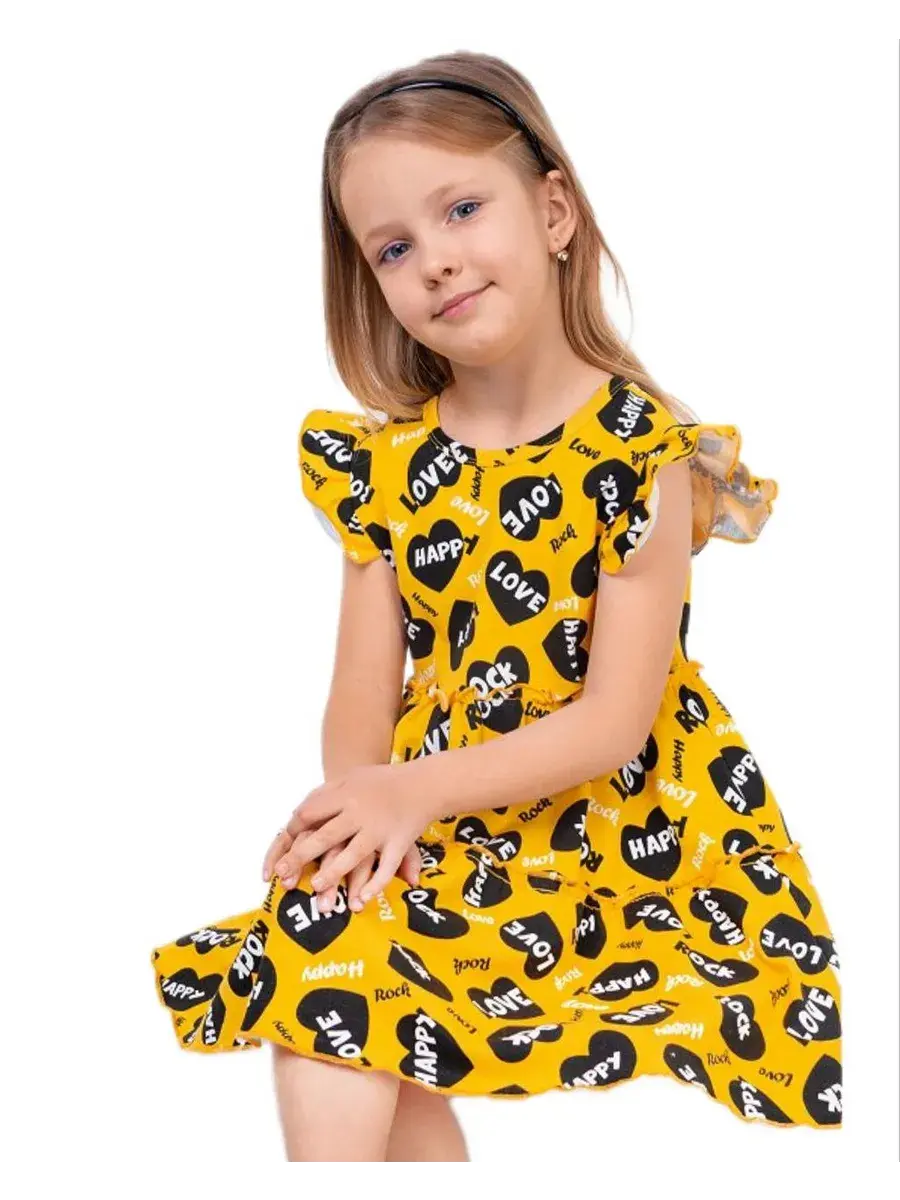 Хлопковое платье для девочки из мягкого приятного материала с сердечками с короткими рукавами.