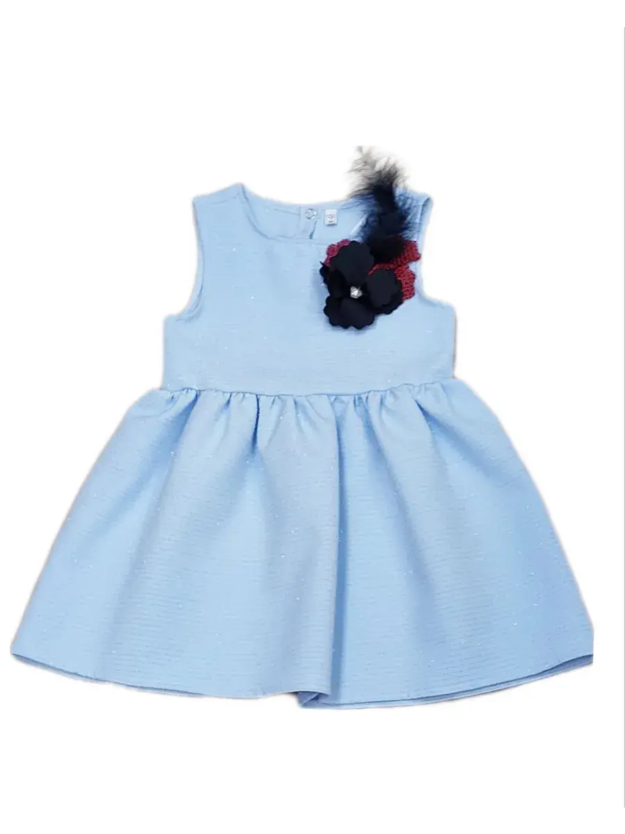 Нарядное платье для девочки из материала с рюлексовой нитью и оригинальным дизайном.