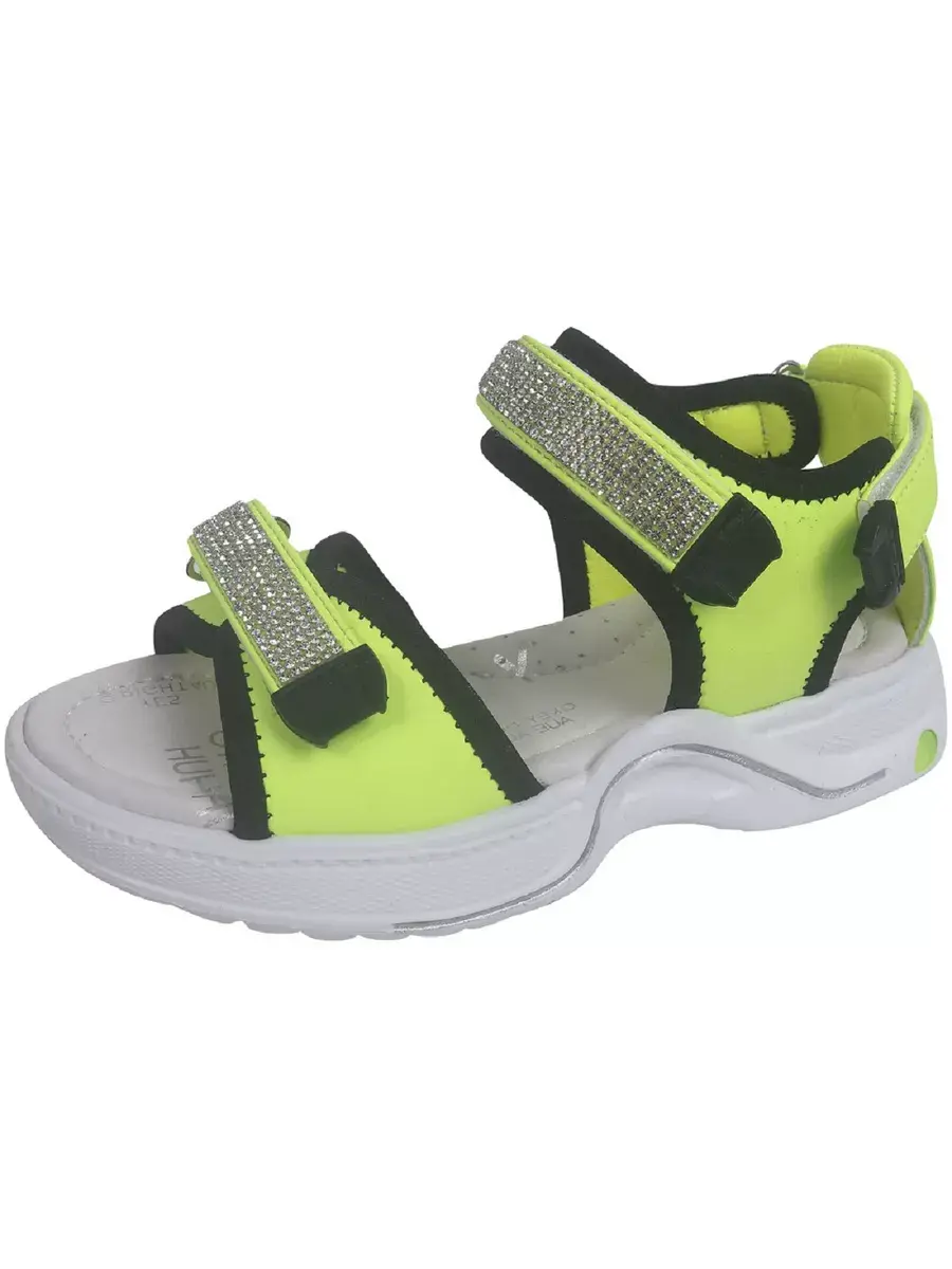 Сандалии для девочки легкие, удобные. Подкладка и стелька с супинатором из натуральной кожи, подошвой из ЭВА для мягкости ходьбы, материал верха тестиль. Полнота и взъем регулирется с помощью двойных липучек, также регулируется со стороны пятки.