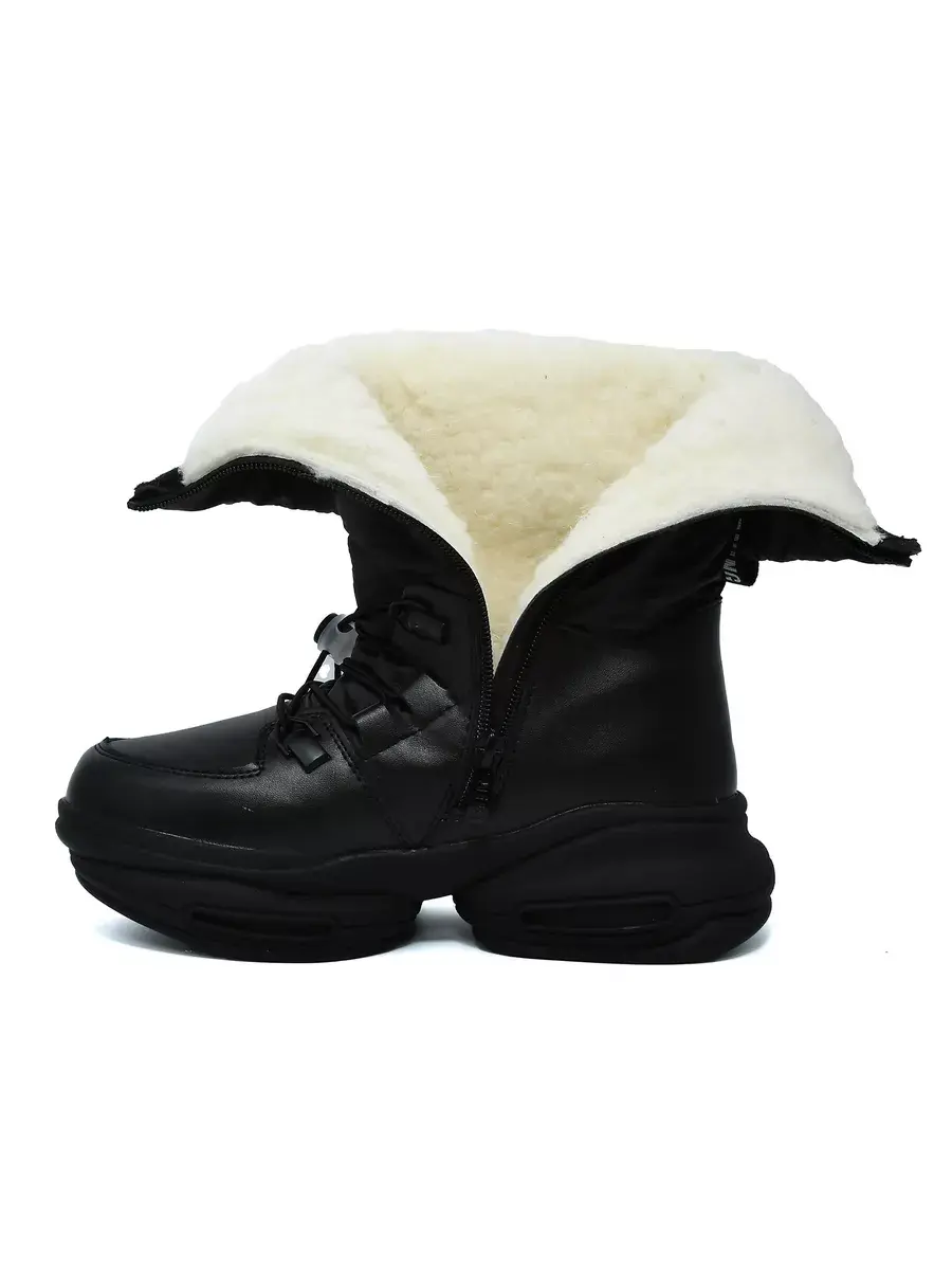 Сапоги для девочек Зимние с подошвой из термопластичной резины, с шерстяной подкладкой и стелькой, с застежкой молнией и шерстяной внутренней составляющей.