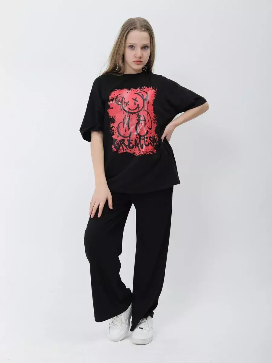 Базовые брюки клеш не выходят из моды, оставаясь в трендах продаж. Так брюки в рубчик хорошая альтернатива школьным брюкам для девочки. Брюки-палаццо- для подростков пошиты из трикотажа футер двухнитка без начеса