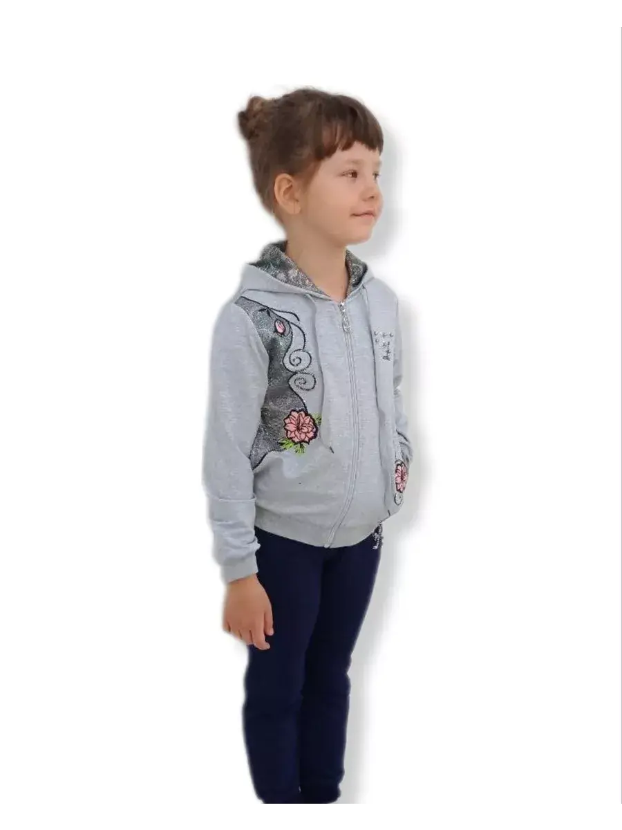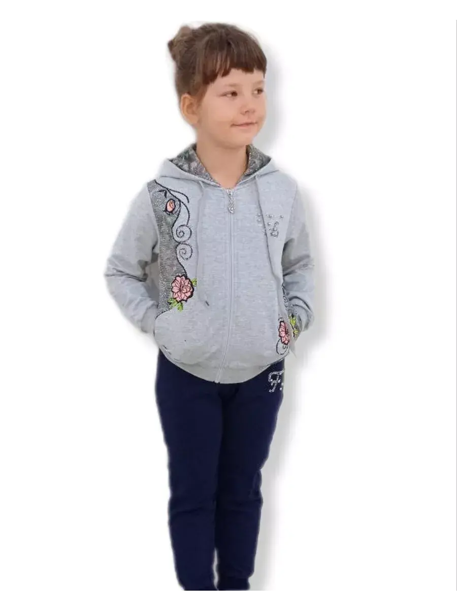 Спортивный костюм с вышивкой и ярким капюшоном- идеальный выбор для девочки.практичный и удобный. Размер 104 (98-104) кофта ширина в пройме 32 см.длина 35,длина рукава 41см.