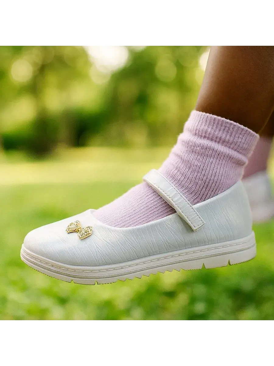 Для девочки с подкладкой из искусственной кожи и стелькой из натуральной кожи с супинатором. Подошва из термопластичной резины (тпр). Подойдет для утренника или любого другого мероприятия.