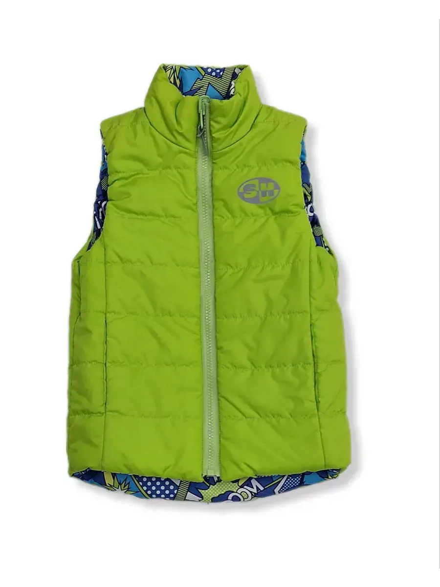 Эта утонченная двусторонняя жилетка для мальчика, разработанная в Италии, станет идеальным выбором для весенних и межсезонных прогулок. Изготовленная из высококачественного полиэстера с уютным полиэфировым внутренним слоем, она обеспечивает защиту от прохладной погоды, сохраняя тепло ребенка.